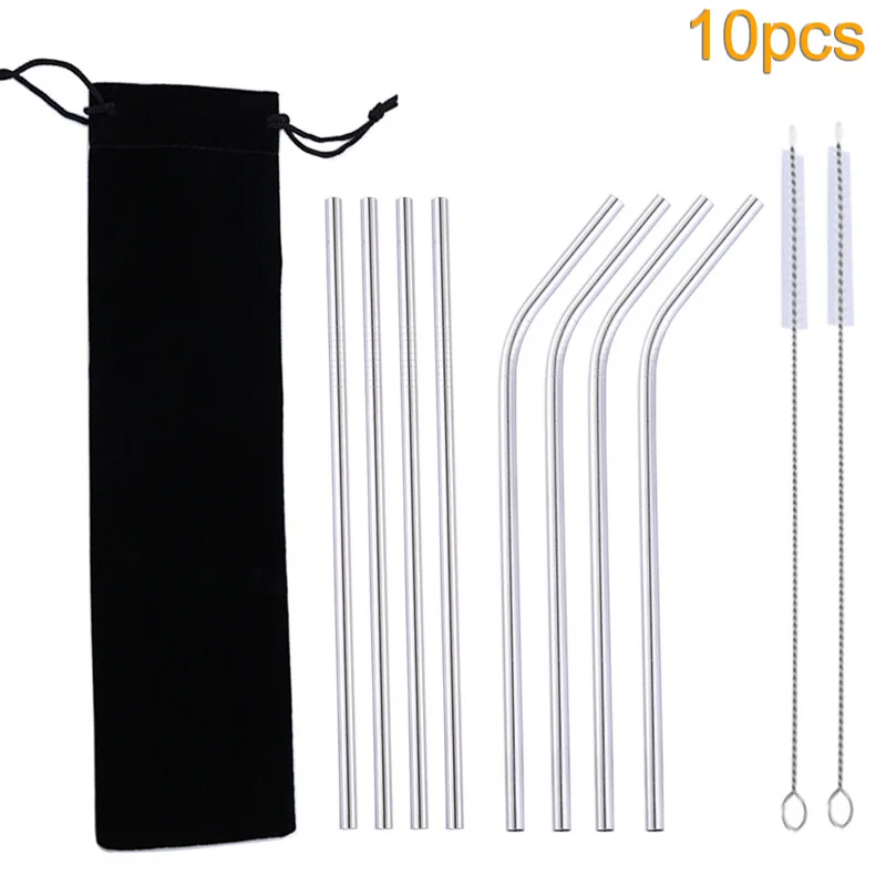 Great buy Silver/Rainbow 10Pcs Reusable Straight Curved Drinking Straw Cleaning Brush Set Stainless Steel